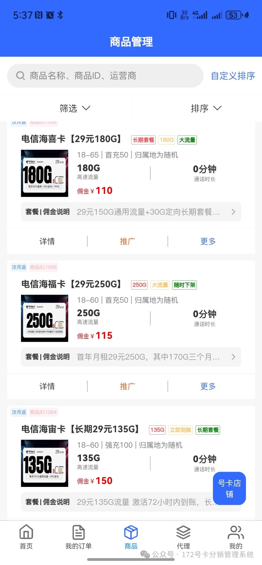 总之,172号卡平台是一个为代理商提供流量卡销售机会的分销平台,通过推广和团队发展,代理商可以实现可观的收入。如果您对流量卡销售感兴趣,172号卡平台将是一个值得尝试的选择!